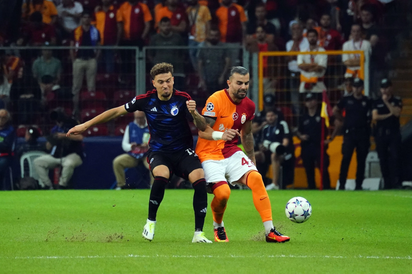 Kopenhag: Kamil Grabara, Elias Jelert, Kevin Diks, Denis Vavro, Birger Meling, Lukas Lerager, Rasmus Falk, Diogo Gonçalves (Viktor Claesson dk. 70), Mohamed Elias Achouri (Valdemar Lund dk. 75), Mohamed Elyounoussi (Oscar Hojlund dk. 90+3), Jordan Larsson (Orri Steinn Oskarsson dk. 70 (Peter Ankersen dk. 75)) Yedekler: Theo Sander, Andreas DithmerJensen, Christian Sorensen, Mateo Tanlongo, William Clem, Roony Bardghji Teknik Direktör: Jacob Neestrup Goller: Mohamed Elyounoussi (dk. 35), Diogo Gonçalves (dk. 58) (Kopenhag), Sacha Boey (dk. 86), Tete (dk. 88) (Galatasaray) Kırmızı kart: Elias Jelert (dk. 73) (Kopenhag) Sarı kartlar: Lukas Lerager, Kevin Diks, Birger Meling (Kopenhag), Hakim Ziyech, Sergio Oliveira (Galatasaray)