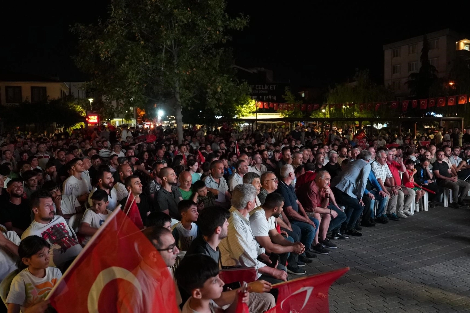 Osmangazililer, A Milli Futbol Takımı'nın Euro 2024 Avrupa Futbol Şampiyonası'ndaki üçüncü maçını Osmangazi Belediyesi tarafından Bağlarbaşı ile Demirtaş meydanlarında kurulan dev ekranlarda izledi. F Grubu'ndaki son maçında Çekya karşılaşan A Milli Futbol Takımı'na uzaktan da olsa destek vermek isteyen binlerce kişi, kurulan dev ekranlarda maçı izlemek için toplandı. Osmangazi Belediye Başkanı Erkan Aydın da CHP Osmangazi İlçe Başkanı Cengiz Çelikten, meclis üyeleri, muhtarlar ve binlerce Osmangazili ile birlikte Bağlarbaşı Meydanı'ndaki yerini alarak, milli heyecana ortak oldu.