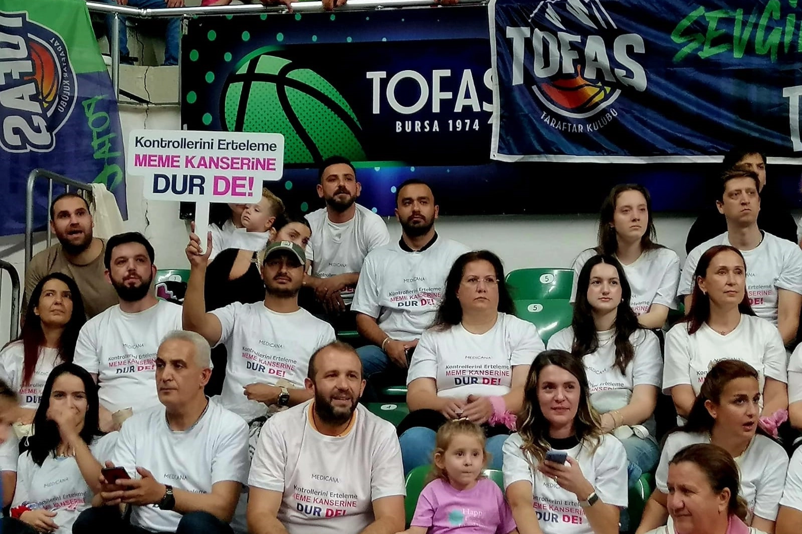 Heyecan dolu geçen maçta, Medicana Bursa Hastanesi çalışanları ve Bursa Kanserle Savaş Derneği üyeleri meme kanserine dikkat çekmek içintribündeki yerlerini aldı. Ayrıca, ellerinde tuttukları dövizlerle "Kansere dur de' mesajı vererek, meme kanserinde erken teşhisin önemine vurgu yaptı.