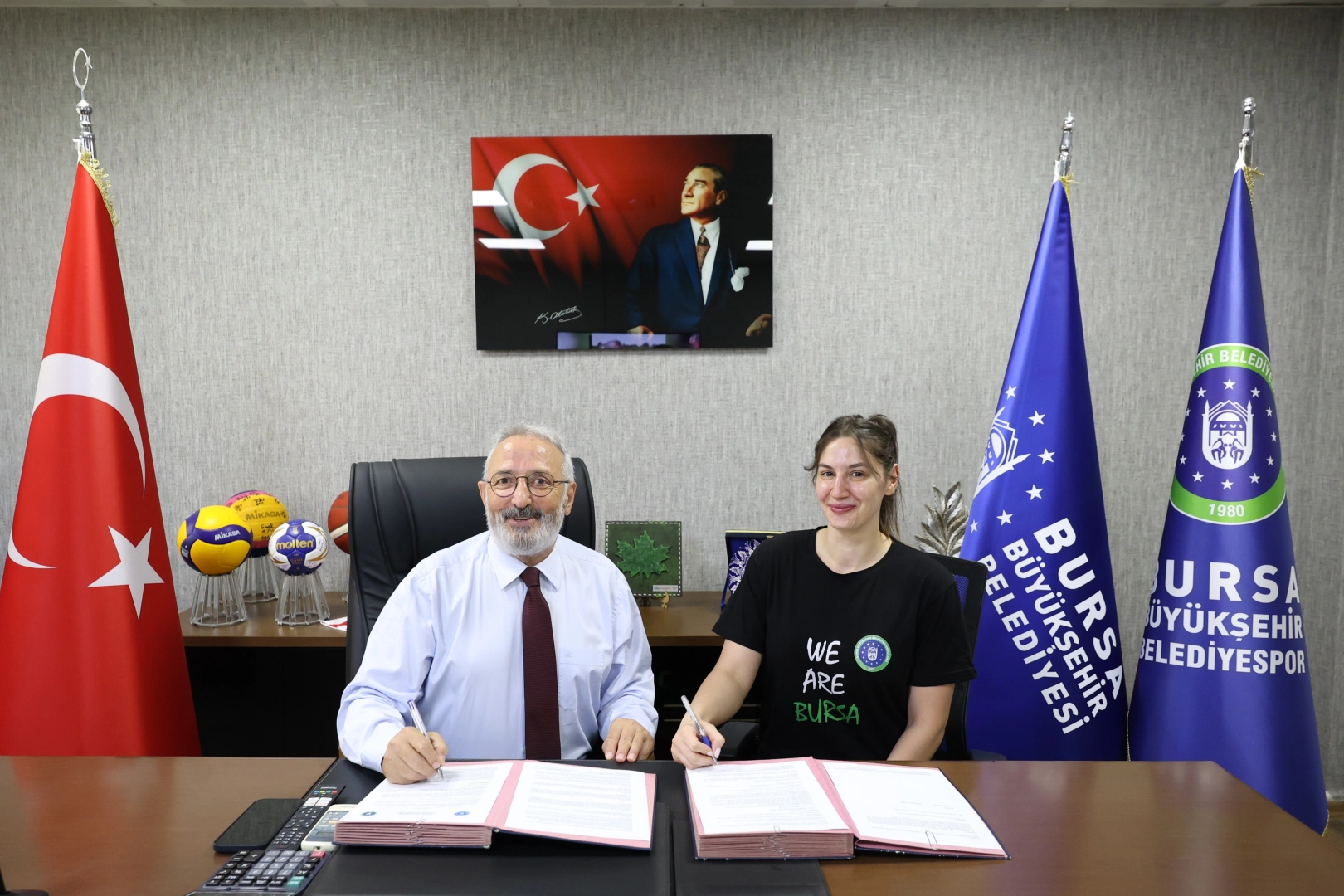 İmza töreninde konuşan Bursa Büyükşehir Belediyespor Kulübü Başkanı Muhammet Aydın, sakatlıksız bir sezon dilerken, takımda kalan ve kadroya yeni dahil olan oyunculara başarı diledi. Başkan Aydın, mücadele ettikleri her kulvarda Bursa’yı en iyi şekilde temsil etmek istediklerini ve yeni sezonda da takıma güvendiğini söyledi. Törende ayrıca yeni sezonda da devam eden Başantrenör Mehmet Fatih Işık, Yardımcı Antrenör Ali Karayörük ve Fizyoterapist Gizem Çelikada da sözleşme imzaladı.