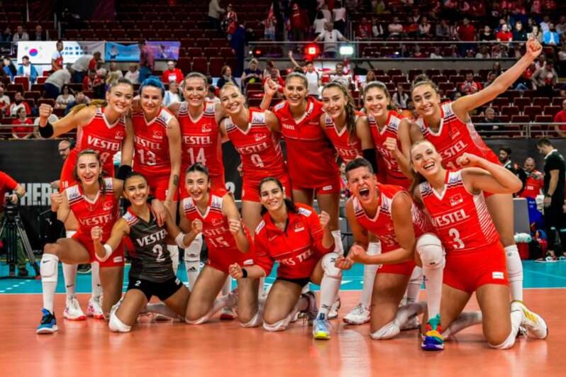 FIVB Dünya Şampiyonası'nda mücdele eden A Milli Kadın Voleybol Takımı, Dominik Cumhuriyeti ile karşılaştı. Grupta üçüncü maçında ikinci galibiyetine imza atan millilerde Ebrar Karakurt 29 sayıyla en skorer isim olurken; Zehra 11, Hande 10, Eda 10, Saliha 8, Elif 3, Cansu 2 ve Meryem 1 sayıyla oynadı. Filenin Sultanları, gruptaki dördüncü maçında yarın TSİ 18.30’da Hırvatistan ile karşılaşacak. Salon: Ergo Arena Hakemler: Ivaylo Ivanov (Bulgaristan), Andrea Puecher (İtalya) Türkiye: Cansu, Saliha, Zehra, Ebrar, Hande, Eda, Simge (L) (Elif, Meryem, Meliha, İlkin) Dominik Cumhuriyeti.: Marte, B.Martinez, Gonzalez, G.Gonzalez, Pena Isabel, J.Martinez, Castillo (L) (De La Cruz, Inmaculada, D.Martinez, Caro, Jazmin, Paredes) Setler: 21-25, 25-21, 25-18, 16-25, 15-13 Süre: 142 dakika