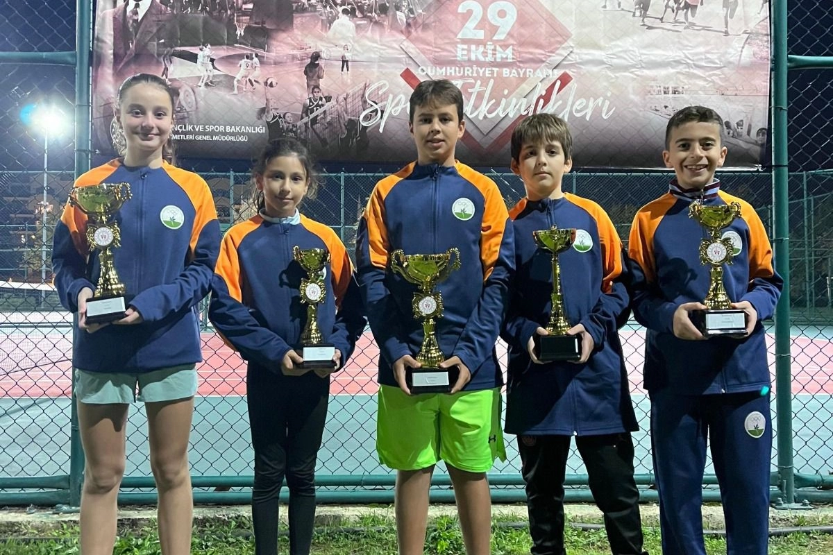 Spora ve sporcuya verdiği desteklerle bu zamana kadar çok sayıda şampiyon yetiştiren Osmangazi Belediyespor, Tenis branşında ivme yakaladı. Gençlik ve Spor İl Müdürlüğü tarafından Mihraplı'da gerçekleşen 29 Ekim Cumhuriyet Kupası Turnuvası'nda mücadele eden başarılı takım, elde ettiği derecelerle büyük gurur yaşattı. Erkekler 12 yaş kategorisinde yansıttığı azim, disiplin ve kararlılıkla göz dolduran Kerim Başar Dönmez, tüm rakiplerini gölgede bırakarak şampiyonluk kürsüsüne çıktı. Onu takip eden Ege Atasoy, sergilediği etkileyici oyunla ikincilik elde ederken, Fatih Erdem Dağlar dördüncülük derecesiyle turnuvayı tamamladı. Kızlar 12 yaş kategorisinde ise Gülce Nil Aşkın, müsabakanın en dikkat çeken isimlerinden biri olarak ikincilik madalyası kazanırken, Azra Özyardımcı da güçlü rakipleri arasında turnuvayı üçüncülük ile taçlandırdı. Osmangazi Belediye Başkanı Erkan Aydın, Osmangazi'yi en iyi şekilde temsil eden genç sporcular ile antrenörlerini yürekten kutladı.