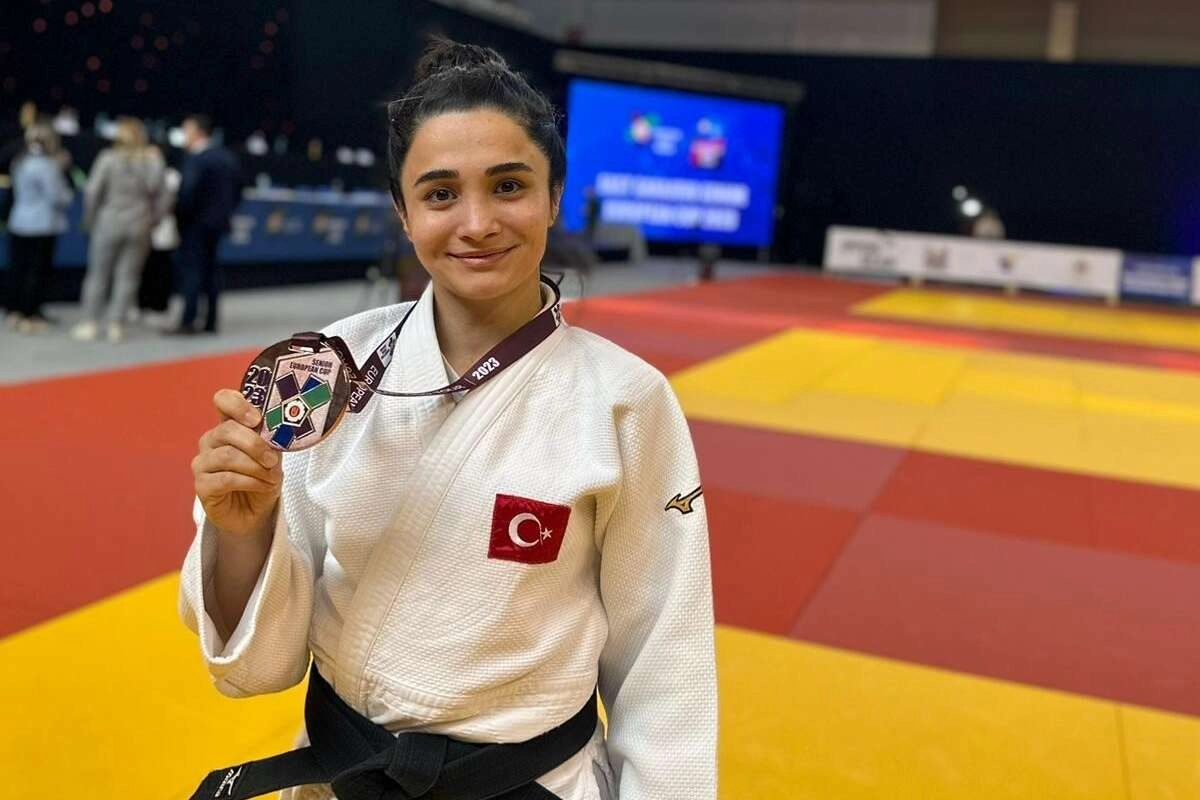 Türkiye Judo Federasyonu’nun 2023 yılı faaliyet programında yer alan Büyükler Avrupa Kupası, kıyasıya mücadelelere sahne oldu. Artan sporcu sayısı ve yenilikleriyle kendini geliştirmeye devam eden Osmangazi Belediyespor, olimpiyat yıldızı Melisa Çakmaklı Arslan ile Bursa’ya madalya kazandırdı. 25 ülkeden 297 sporcunun ter döktüğü turnuvada 48 kilogramda tatamiye çıkan Arslan, Macar rakibi Szabina Szeleczki’yi ipponla yenerek üçüncülük kürsüsüne oturdu. Osmangazi Belediye Başkanı Mustafa Dündar, Bursa’yı başarıyla temsil eden genç sporcu ile antrenörünü yürekten kutladı.