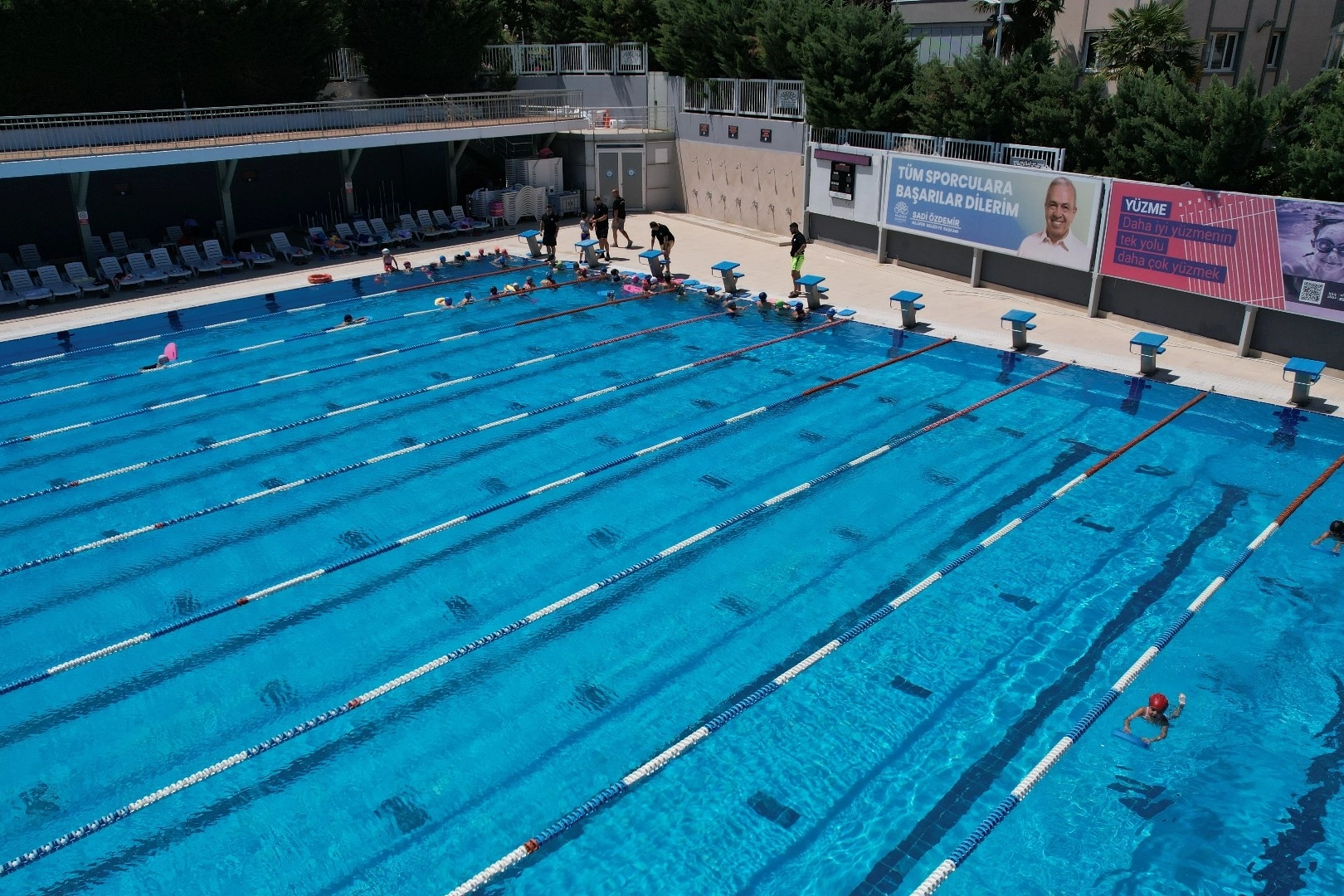 Nilüfer Belediyesi’ne ait Konak Yüzme Havuzu Tesisi, kapalı ve açık olmak üzere 2 havuz ve 1 fitness salonuyla Bursalılara hizmet veriyor. Tesiste, yaz sezonuyla birlikte tam olimpik yüzme havuzu da her yıl olduğu gibi bu yıl da faaliyetlerine başladı. Nilüfer Belediyespor Yüzme Branşı Koordinatörü Tahsin Gencebay, yaptığı açıklamada, yarı olimpik kapalı havuzun yıl boyu faaliyetlerine devam ettiğini, tam olimpik açık yüzme havuzunun ise 23 Haziran’da hizmete girdiğini söyledi. Tesisin, İl Sağlık Müdürlüğü’nün geçen yıl yaz boyu düzenli aralıklarla aldığı numuneler sonucunda Bursa’nın en temiz açık havuzu seçildiğini dile getiren Gencebay, "Temiz havuz sertifikasıyla ödüllendirildik. Tüm halkımız gönül rahatlığı ile havuzumuzu kullanabilir" diye konuştu. Nilüfer Belediyesi ve Nilüfer Belediyespor Kulübü işbirliğiyle düzenlenen yaz spor okullarının başladığının bilgisini veren Gencebay, "29 Ağustos’a kadar devam edecek. 2 haftalık yüzme kurslarımızda çocuklarımız 10 ders eğitim alıyorlar. Bunun dışında havuzumuz, hafta içi 13.00-19.00 saatleri arasında hafta sonu ise 10.00-19.00 saatleri arasında günlük girişlere açık" dedi.