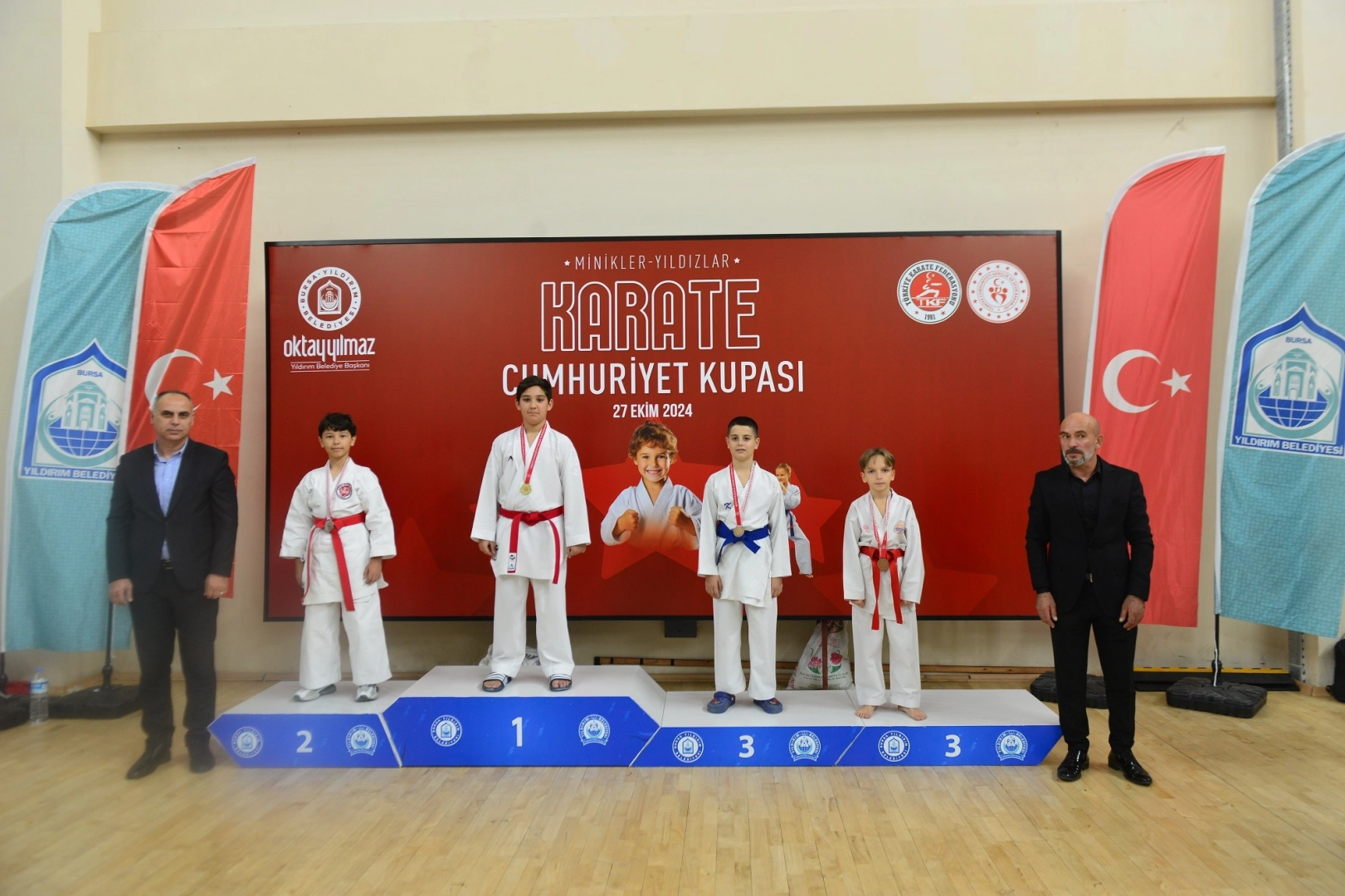 Yıldırım Belediyesi, 29 Ekim Cumhuriyet Bayramı Karate Kupası düzenledi. Yıldırım Belediyesi, 29 Ekim Cumhuriyet Bayramı'na özel karate turnuvası düzenledi. Naim Süleymanoğlu Spor Kompleksi'nde minikler ve yıldızlar kategorisinde düzenlenen karate kupasına 26 kulüpten 509 sporcu katıldı. Turnuvaya katılan sporcuları tebrik eden Yıldırım Belediye Başkanı Oktay Yılmaz, “Yıldırım ilçemiz tarih, sanat ve kültür kenti olduğu kadar aynı zamanda bir spor kentidir. Yıldırım Belediyesi olarak ilçenin spor kenti kimliğini güçlendirmek ve 7'den 70'e herkesi sporla buluşturmak için önemli yatırımlar yapıyoruz. Yaptığımız yatırımların meyvelerini hamdolsun görmeye başladık. Sporcularımız ulusal ve uluslararası birçok yarışmaya katılarak ilçemizi temsil ediyor. Yıldırım'ın adını tüm dünyaya duyurmak için ellerinden gelen çabayı sarf ediyorlar. Göğsümüzü kabartan başarılarından dolayı sporcularımıza teşekkür ediyorum. Yıldırım'ı sporda marka kent yapmak için çalışmalarımızı sürdüreceğiz” dedi.