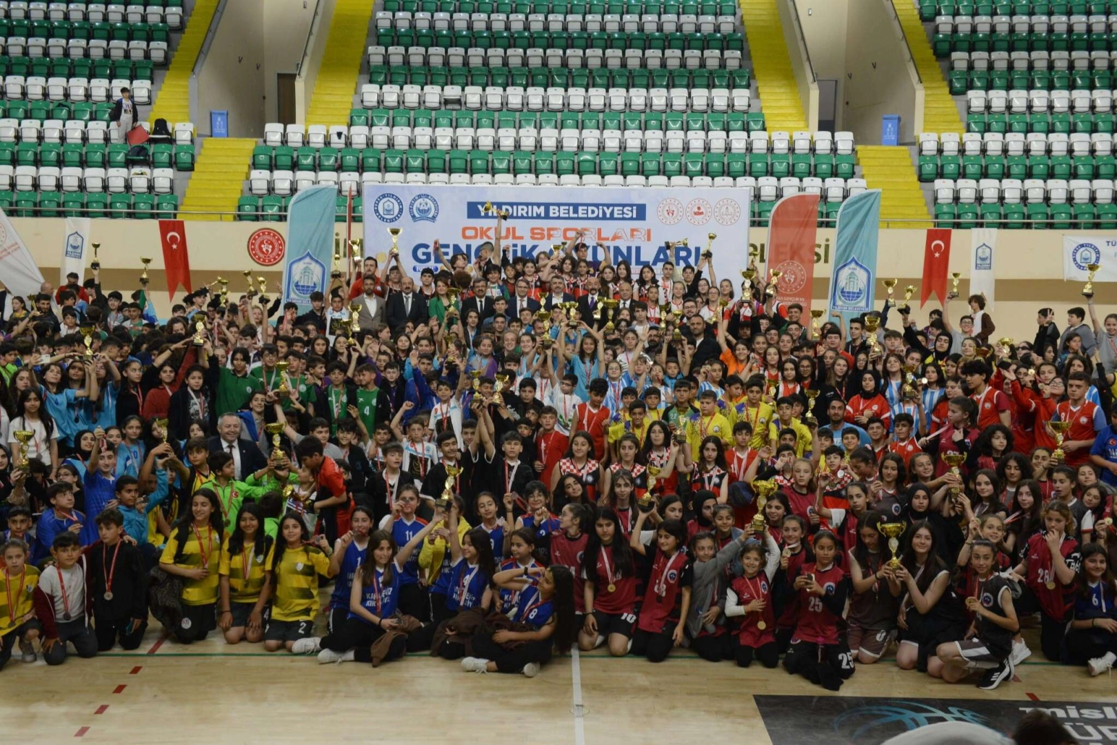 Naim Süleymanoğlu Spor Kompleksi’nde gerçekleşen Okul Sporları Gençlik Oyunları’nın ortaokul kategorisi final törenine Yıldırım Belediye Başkanı Oktay Yılmaz’ın yanı sıra Yıldırım İlçe Kaymakamı Metin Esen, Büyükşehir Belediyesi Başkan Vekili Fethi Yıldız, İlçe Gençlik ve Spor Müdürü Mehmet Demirci, okul müdürleri ve sporcular katıldı. Sekiz branşta yapılan 346 maçın ardından dereceye giren öğrencilere ödülleri verilirken gençlik oyunlarına katılan tüm okullara Yıldırım Belediyesi tarafından spor malzemesi dağıtımı yapıldı. Okul Sporları Gençlik Oyunları’nın, Yıldırım’ın sporda geldiği noktayı ortaya koyması açısından son derece önemli olduğunu ifade eden Belediye Başkanı Oktay Yılmaz, “Geçtiğimiz hafta lise kategorisinde düzenlenen oyunların kapanış törenini yapmıştık. Lise kategorisinde spor oyunlarımıza; 27 okul, 118 takım ve toplam bin 150 gencimiz katılırken ortaokul düzeyinde; 41 okuldan 146 takım ve bin 636 sporcumuz katıldı. Turnuvamıza katılım gösteren tüm sporcularımızı, hocalarımızı tebrik ediyorum” diye konuştu. 174 bin 503 kişiye hizmet Yıldırım’ın tarih, kültür ve medeniyet kenti olduğu kadar aynı zamanda bir spor kenti olduğunun altını çizen Başkan Oktay Yılmaz, “Yıldırım’ın spor kenti kimliğini güçlendiren hizmetlerimiz şükürler olsun meyveleri veriyor. Yıldırım Belediyesi olarak son 4 yılda; yaz ve kış spor okullarında 102 bin, cimnastik okullarında 19 bin, sosyal sorumluluk projelerinde 7 bin evladımıza, özel ihtiyaç sahibi bin 102 çocuğumuza ve ailesine, kadın spor merkezlerimizde 45 bin kadınımıza, toplam da ise 174 bin 503 vatandaşımıza spor ve eğitim hizmeti verdik. Spor kenti Yıldırım’ı daha iyiye taşımak için çalışmalarımızı sürdüreceğiz” dedi.