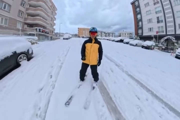 Kayak yaparken kendini kayda da alan vatandaş, karla kaplanan yollarda rahatlıkla ilerlediği anları sosyal medyada paylaştı. Görüntüler kısa sürede ilgi gördü. Yoğun kar yağışı sonrası belediye ekiplerinin yol açma ve tuzlama çalışmalarını sürdürdüğü öğrenilirken, yetkililer sürücü ve yayaları dikkatli olmaları konusunda uyardı.