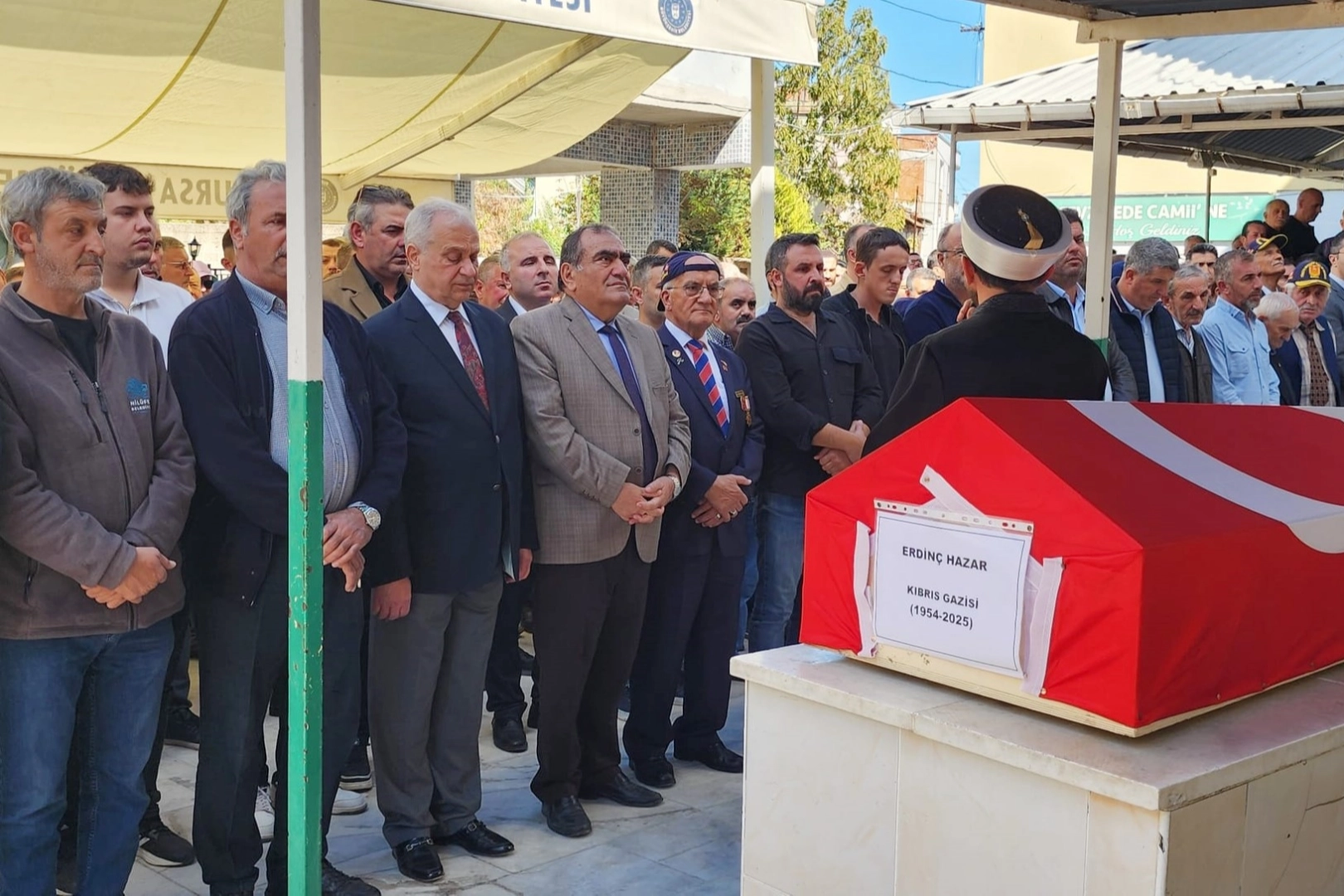 Hazar, kılınan cenaze namazı sonrası askeri tören ve dualarla Adile Mezarlığı'na defnedildi. Kıbrıs Gazi Erdinç Hazar'ı silah arkadaşları da asker selamıyla uğurladı.