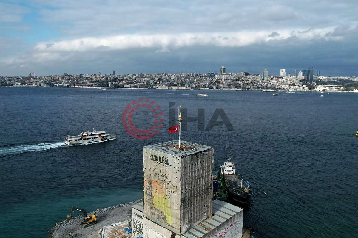 Kız Kulesi'nde Kültür ve Turizm Bakanlığı tarafından 2021 yılında başlatılan restorasyon çalışmaları hız kesmeden devam ediyor. Yapılan çalışmalarla Kız Kulesi'nin üst tarafında bulunan iskelenin sökülmesinin ardından kuleye ait Türk bayrağının asılı olduğu direk ve alem ortaya çıktı. Devam eden çalışmalar dron ile görüntülendi.