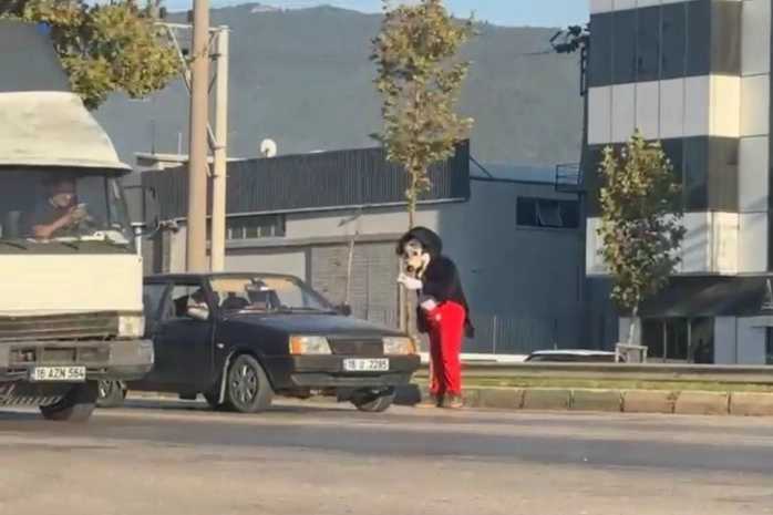 Bursa'nın Kestel ilçesinde, şehirlerarası yolda Miki Fare kostümü ile peçete satan kişi, sürücülerin ilgi odağı oldu. Kostüm ile sürücülere selam verip peçete satmak için araçlara yaklaşan kişi, herkesin yüzünü güldürdü. Bazı sürücüler hayret dolu gözlerle ne olup bittiğini anlamaya çalışırken, kimileri ise hoşuna gittiği için korna çalarak selam verdi.