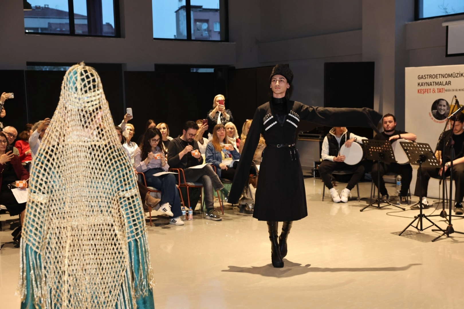 Geleneksel "Haluj" yapımının sadece bir mutfak mesaisi olmadığını belirten Türker, "Kadınların bir araya gelerek haluj yapması, aslında diasporada yaşayan bir halkın anavatanla bağlarını canlı tutma çabasıdır. Bu buluşmalar, kimliğin çocuklara ve gençlere aktarıldığı, birlik ve beraberliğin pekiştirildiği çok önemli bir kültürel aktarım alanıdır" dedi. Gastronomi, tarih ve sosyolojinin iç içe geçtiği söyleşi, kültürel dokuya uygun müzik ve yöresel lezzet sunumlarıyla renklendi. Katılımcılara pelür kağıdına sarılı Kürt böreği, Paskalya çöreği ve Antakya kahkesi ikram edilirken; bu kültürel çeşitliliğe Fairouz şarkıları ve "Leylim Ley" ezgileri eşlik etti. Baharın gelişinin gelincik şerbetiyle kutlandığı gece, tomara tavası ikramı ve Çerkez Derneği'nin sunduğu coşkulu müzik ve dans performansıyla sona erdi.