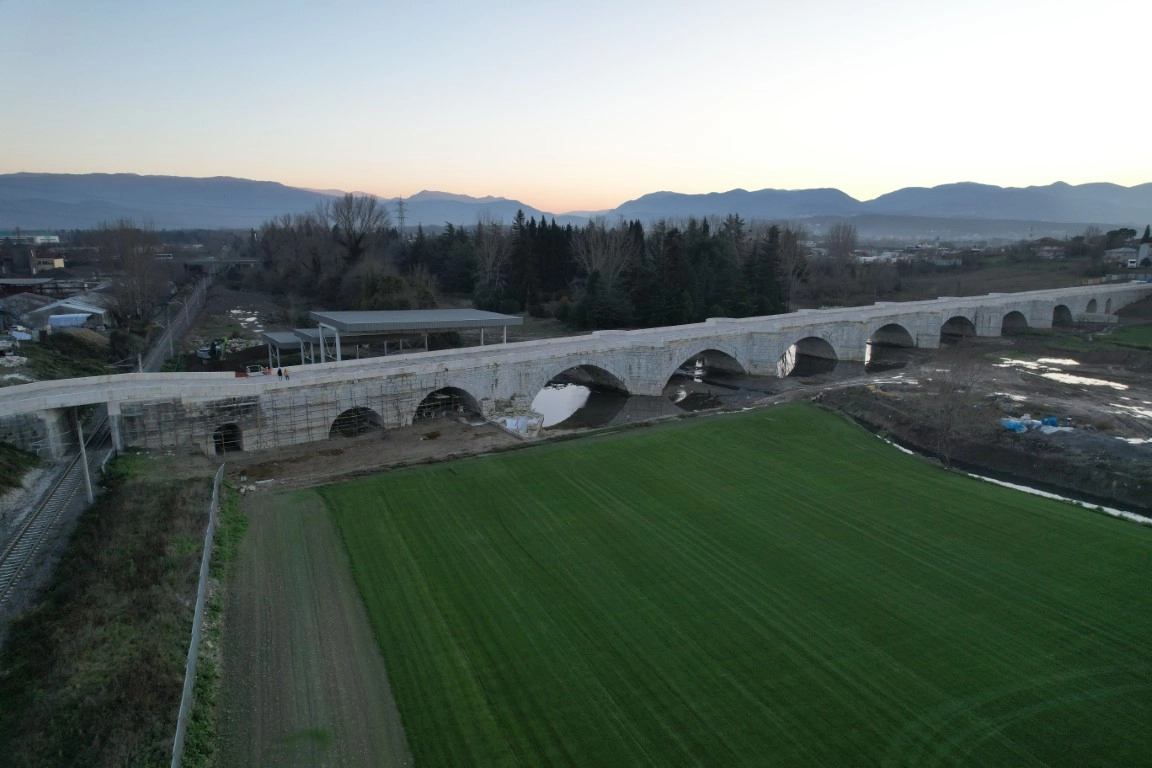 Doğu Roma İmparatoru Justinianus tarafından MS 562 tarihinde yaptırılan, adını imparatordan alan ve Ayasofya Camii ile yaşıt tarihiyle dikkat çeken Justinianus Köprüsü 12 kemer gözünden oluşuyor. Justinianus’un Boğaziçi yerine gemiyle Anadolu’dan geçebilmek için kanal projesi planladığı ve köprünün bu projenin bir parçası olduğu iddiaları uzmanlar tarafından tartışılırken sır perdesi hala çözülemedi. Halk arasında Beşköprü olarak da bilinen ve 2018’de UNESCO tarafından Dünya Mirası Geçici Listesi’ne alınan köprüde restorasyon kapsamında yapılan kazılarda güney cephesindeki sarnıç ve hamam yapısı ortaya çıkmıştı. Bin 500 yıldır tarihe tanıklık eden Justinianus Köprüsü, Bizans İmparatorluğu döneminin Anadolu’daki en görkemli eserlerinden biri olarak da biliniyor. Köprü tarihi hakkında bilgi veren Sakarya Uygulamalı Bilimler Üniversitesi (SUBÜ) Sakarya Sosyal ve Kültürel Çalışmalar Uygulama ve Araştırma Merkezi (SAKUM) Müdürü Dr. M. Alper Cantimer, “Justinian döneminin önemli eserlerinden bir tanesidir, 562 yılında yapılmıştır. Günümüze gelen bu köprüyle ilgili çok fazla ve farklı görüş bulunmaktadır. Köprünün manzara ile içerisindeki uyumsuzluğu dikkat çekmektedir. Bu da aslında köprü üzerindeki araştırmaların çoğalması gerektiğini de bize göstermektedir. Köprü üzerinde şu an itibariyle Karayolları Genel Müdürlüğü’nün 2019 yılında başlamış olan bir yenileme çalışması devam etmekte ve 2018 yılında da UNESCO Dünya Geçici Kültür Miras Listesi’ne dahil edilmiş önemli bir yapıdır” dedi.