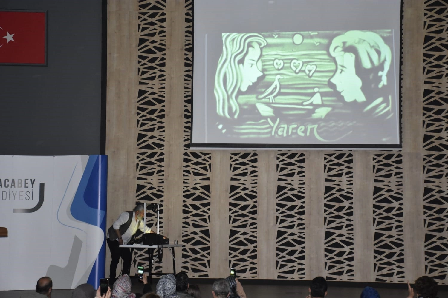 Karacabey Belediyesi’nin ev sahipliğinde düzenlenen 1. Karacabey Kitap Fuarı, edebiyat tutkunlarını ve sanatseverleri Ergün Koç Kültür Merkezi'nde buluşturmaya devam ediyor. Fuarın ilk gününde sahne alan kum sanatı sanatçısı Tarkan Köylü, gerçekleştirdiği etkileyici performansla izleyenlere unutulmaz anlar yaşattı. "Baharın Coşkusuyla" mottosuyla yola çıkan fuar, sadece kitaplarla değil; aynı zamanda sanatın farklı dallarından gösterilerle de Karacabeylilere kültür dolu anlar sunuyor. Bu kapsamda gerçekleşen Tarkan Köylü’nün kum sanatı gösterisi, etkinliğin en dikkat çeken anlarından biri oldu. Elinde bir avuç kumla, ışık ve gölge oyunlarını ustalıkla kullanarak oluşturduğu görseller, izleyenleri adeta mest etti. Katılımcılardan büyük beğeni Sessizliğin içinde estetikle buluşan bu güzel gösteri, programa gelen katılımcılardan tam not aldı. Kumla şekillenen hikâyeler, izleyicileri hem görsel hem de duygusal bir yolculuğa çıkardı. Sanatçı, performansında Yaren Leylek ve Adem Amca, Atatürk, Türkiye haritası ve Türk bayrağı gibi simgelerle; kimi zaman doğayı, kimi zaman insan portrelerini, kimi zaman da kitapların büyülü dünyasını resmetti. Bu etkileyici gösteri, izleyiciler tarafından dakikalarca alkışlandı. Tarkan Köylü: "Her kum tanesi bir hikâye anlatır" Gösteri sonunda kısa bir konuşma yapan Tarkan Köylü, sanatıyla Karacabeylilerle buluşmanın kendisi için büyük mutluluk olduğunu ifade ederek şunları söyledi: "Kum sanatı, geçici ama bir o kadar da etkili bir ifade biçimidir. Her kum tanesiyle bir hikâye anlatmak mümkündür. Bu güzel organizasyonda yer almak benim için çok anlamlıydı. Kitapların olduğu yerde sanatın da olması gerektiğine inanıyorum. Karacabeyli sanatseverlerle aynı ortamı paylaşmak beni fazlasıyla mutlu etti. Böyle anlamlı bir etkinliği hayata geçiren Karacabey Belediye Başkanı Sayın Fatih Karabatı’ya ve emeği geçen Kültür Müdürlüğü ekibine gönülden teşekkür ediyorum." Program sonunda Kültür Müdürlüğü tarafından Tarkan Köylü’ye plaket takdim edildi.