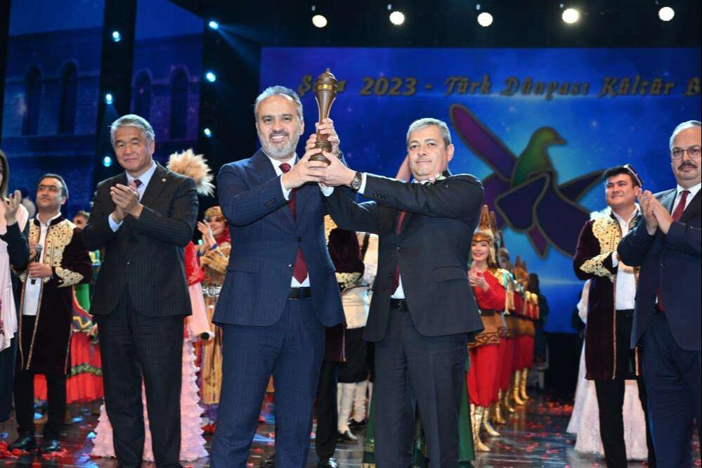 TÜRKSOY’un 38. Daimi Konsey Toplantısı’nda alınan kararla Türk Dünyası Kültür Başkenti olan Bursa, bir yıl boyunca yurtiçi ve yurtdışında düzenlediği birbirinden farklı etkinlikle Türk kültür sancağını başarıyla dalgalandırdı. TÜRKSOY'un Bursa'da yapılan 39'uncu Daimi Konseyi'nde alınan kararla başkentlik unvanı Azerbaycan'ın Şuşa kentine geçerken, kutlu emanet muhteşem bir devir teslim töreniyle Bursa'dan Şuşa'ya geçti. Atatürk Kongre ve Kültür Merkezi'nde gala yemeği ve fotoğraf sergisi ile başlayan devir teslim törenine Bursa Büyükşehir Belediye Başkanı Alinur Aktaş’ın yanı sıra Kültür ve Turizm Bakan Yardımcısı Dr. Serdar Çam, Vali Yakup Canbolat, Azerbaycan Cumhurbaşkanı Şuşa Özel Temsilcisi Aydın Kerimov, Uluslararası Türk Kültür ve Miras Vakfı Başkanı Günay Efendiyeva ve TÜRKSOY Genel Sekreteri Sultan Raev, Türk Devletleri Teşkilatı Genel Sekreteri Kubaniçbek Ömüraliyev, Gagavuzya Kültür Bakanı Mariya Maruneviç ile çok sayıda davetli katıldı. Kardeşliğimiz daim olsun Bursa Büyükşehir Belediye Başkanı Alinur Aktaş, devir teslim töreninde yaptığı konuşmada, geçtiğimiz yıl Hiva'dan aldıkları emaneti büyük bir gururla Şuşa'şa teslim etmenin mutluluğunu yaşadıklarını söyledi. Emaneti aldıkları ilk günden itibaren Türk dünyasını temsil eden pek çok etkinliğe imza attıklarını dile getiren Başkan Aktaş, "Hem şehrimizi hem ülkemizi en güzel şekilde tanıttık. Çünkü bu aynı zamanda bir turizm faaliyetiydi. 300 milyonluk bir Türk dünyası söz konusuydu. Aldığımız emanati can Azerbaycan'a, Karabağ zaferinin nirengi noktası olan Şuşa'ya teslim ediyoruz. Görevimizi tamamlamanın mutluluğunu yaşıyoruz. Bu unvanı ilelebet Bursa olarak taşıyacağız. Son Daimi Konsey'de Türk Dünyası Kültür Başkentleri Koordinasyonu gibi bir görev bize tevdi edildi. Bursa, Türk dünyası kültür başkentliğini ziyadesiyle hak ediyordu. Bu haklı gururu hep birlikte yaşıyoruz. Bu süreçte katkı ve emek veren herkese yürekten teşekkür ediyorum. Dostluğumuz, kardeşliğimiz, birlik ve beraberliğimiz daim olsun" dedi. Bursa yeni bir soluk getirdi TÜRKSOY Genel Sekreteri Sultan Raev de Bursa'nın Türk Dünyası Kültür Başkenti olmanın ötesinde bu uygulamaya yeni bir soluk getirdiğini söyledi. Raev, "Şunu söylemeliyim ki Bursa, bu özel unvanı sadece taşımakla kalmadı, örnek teşkil edecek pek çok adım atarak, Türk Dünyası Kültür Başkenti programına yeni bir soluk getirdi. Bayrağı Karabağ'ın incisi, 2023 Türk Dünyası Kültür Başkentimiz, can Azerbaycanı'mızın Şuşa şehrine devredeceğiz. Şuşa hepimiz için çok önemli ve anlamlı bir yer. Şuşa zaferi, geleceğimizi şekillendirme hususunda bizleri birbirimize sıkı sıkı bağlayan, şanlı ve kutlu bir sürecin sembolü oldu. Şimdi sıra zaferimizi tüm Türk dünyası ile birlikte kutlayarak onu ortak kültürümüzün zenginlikleri ile taçlandırmakta. TÜRKSOY olarak yeni kültür köprüleri inşa etmek üzere yorulmadan çalışacağımızın sözünü veriyoruz" diye konuştu. Bursa'nın manevi ve tarihi yükü var Türkiye Cumhuriyeti Kültür ve Turizm Bakan Yardımcısı Dr. Serdam Çam ise, Bursa'nın Türk Dünyası Kültür Başkentliği unvanını başarıyla taşıdığına dikkat çekti. Çam, "Bursa'nın anlamlı bir şekilde manevi ve tarihi yükü var. Sadece Orta Asya'da değil Balkanlar'da özellikle Bursa'nın çok önemli izleri var. Balkanlar'ın da Bursa'da çok özel izleri var. Afrika'da, Orta Doğu'da bütün coğrafyada inşallah bu çalışmaların artarak devam edeceğine inanıyorum. Her faaliyetlerimiz artarak devam edecektir. Kültür başkenti unvanıyla artık asırlara sarih bir şekilde bütün çalışmaların devam edeceğine inanıyorum. Balkanlar'daki son gelişmelere baktığımızda da Türkiye'nin bu kadar başarılı olması, tarihten gelen yansımasını hissettirmesinden dolayı birtakım Batılı dostlarımızı, müttefiklerimizi rahatsız ediyor ki, sürekli 'Batı Balkanlar' ifadesini kullanmaya çalışıyorlar. 'Batı Balkanlar' ifadesi oradaki Türk kimliğini, Müslüman kimliğini, tarihini ve köklerini görmeme üzerine kurulmuş bir korkunun yansıması ama korkunun ecele faydası yok tabiriyle ne yaparlarsa yapsınlar orada bir gerçek var. Oradaki değerlerimiz bütün Türk dünyasını yansıtıyor" dedi. "Emanetin hayırlı olsun Şuşa" Bursa Valisi Yakup Canbolat da Türk dünyasına başkentlik yapmanın, ortak mirasa sahip çıkmanın ve binlerce yıllık kadim dostları, kardeşleri Bursa'da ağırlamanın her zaman nasip olmayacak büyük bir şeref olduğunu vurguladı. Birçok medeniyete ev sahipliği yapan, İpek yolunun önemli güzergahlarından Bursa'nın kadim bir tecrübeye sahip olduğunu ifade eden Canbolat, "Biz bu tecrübeye her zaman güvendik. Bu ulu şehir bizi hiç yanıltmadı. Tüm Türk dünyasına başkentlik yapmak babayiğitlik isterdi. Şehrimiz bunu gösterdi. Alnımızın akıyla bu görevi nihayete erdirmiş olduk. Verdiğimiz sözü tutmuş olduk. Hem vazifemizi en güzel şekilde ifa ettiğimiz için hem de başka bir babayiğide teslim ettiğimiz için mutluyuz. Şuşa, emanetin hayırlı başkentliğin kutlu olsun" dedi. Konuşmaların ardından TÜRKSOY üyesi ülkelerden gelen sanatçıların halk dansları ve konserleriyle renklenen gecede Bursa Büyükşehir Belediye Başkanı Alinur Aktaş, Azerbaycan Cumhurbaşkanlığı Şuşa Özel Temsilcisi Aydın Kerimov'a Türk Dünyası Kültür Başkenti sembolünü takdim etti.