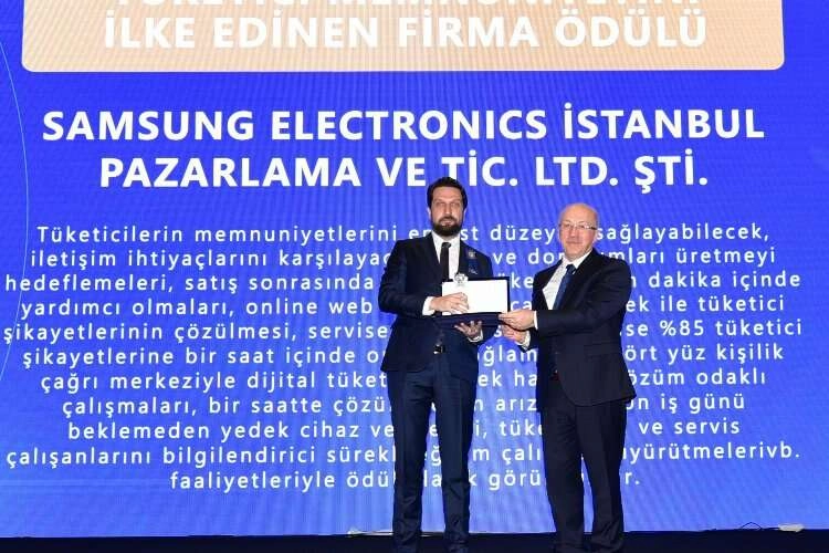 Samsung Türkiye, müşterilerin tüm ihtiyaçlarının hızlıca giderileceği bir deneyim yolculuğu olarak tasarlanan “Kesintisiz İletişim” stratejisi ile ‘Tüketici Memnuniyetini İlke Edinen Firma’ ödülünü almaya hak kazandı. Gerçekleştirilen törende Samsung Türkiye’nin ödülü Ticaret Bakanı Yardımcısı Sezai Uçarmak tarafından Samsung Türkiye Servis ve Müşteri Hizmetleri Direktörü Erbil Topgül’e takdim edildi.