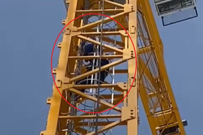 50 metrelik kule vinçte hayat kurtaran operasyon kamerada