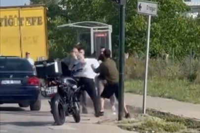 Bursa'da trafikte yaşanan yol verme tartışması kısa sürede kavgaya dönüştü. Anayolu boks ringine çeviren iki sürücü araçlarını durdurup birbirine saldırdı. O anlar kameraya yansıdı.