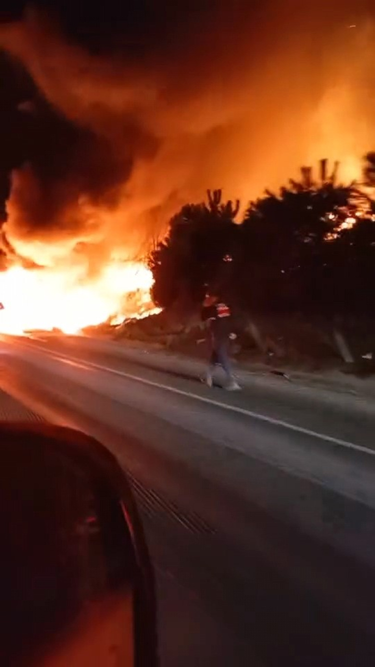 Dumanları gören sürücü, aracı yol kenarına park edip itfaiyeye haber verdi. O sırada araç alev alev yanmaya başladı. Yangın yol kenarındaki ormana da sıçradı. Yangın yerine çok sayıda itfaiye ekibi sevk edildi. Ekipler yangına müdahale ederek kısa sürede söndürdü. Yangın sonucu araç kullanılamaz hale gelirken, ormanda ağaçlar yandı.