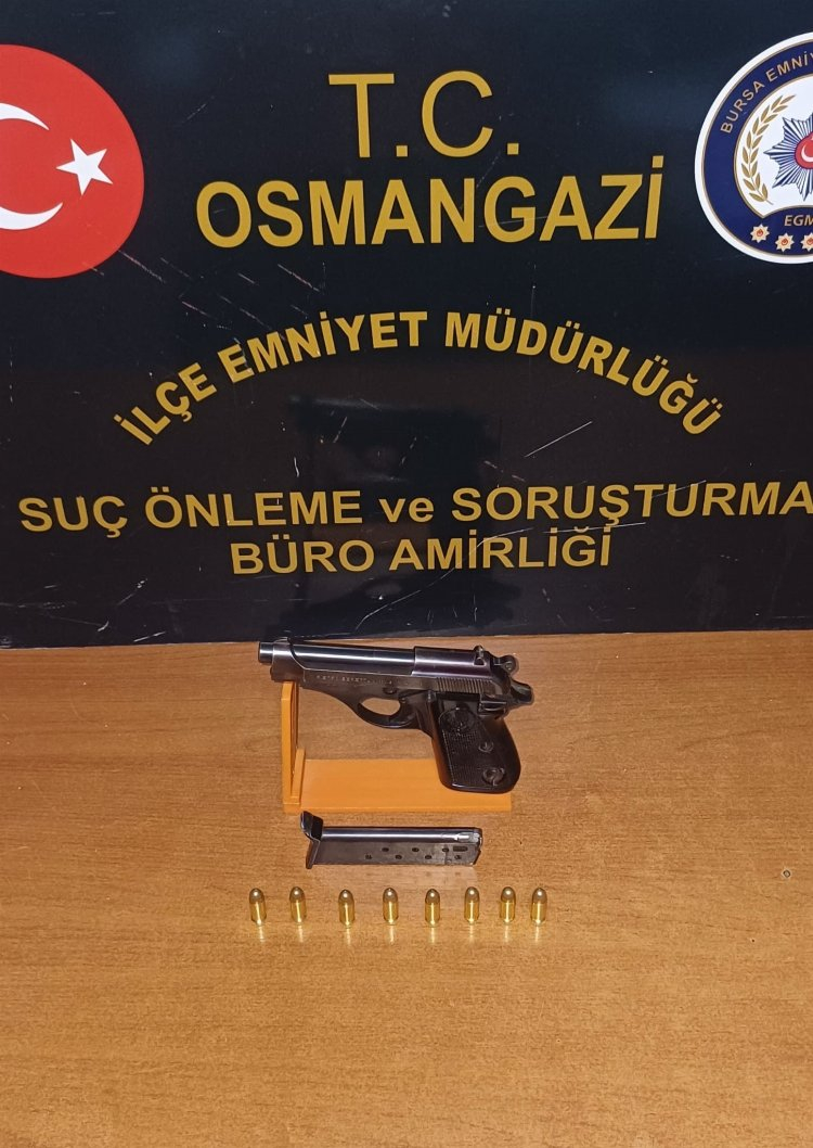 Bursa Emniyet Müdürlüğü Osmangazi İlçe Emniyet Müdürlüğü Suç Önleme ve Soruşturma (SÖS) Büro Amirliği ekipleri suç ve suçluyla aralıksız mücadele ediyor. Ekipler tarafından yapılan uygulamalar neticesinde E.A., K.T., R.M. isimli üç şüpheli şahısın herbirinden 1 adet ruhsatsız tabanca ve mermiler ele geçirdi. A.D. isimli şüpheli şahıstan ise 6 gram metamfetamin yakalandı.