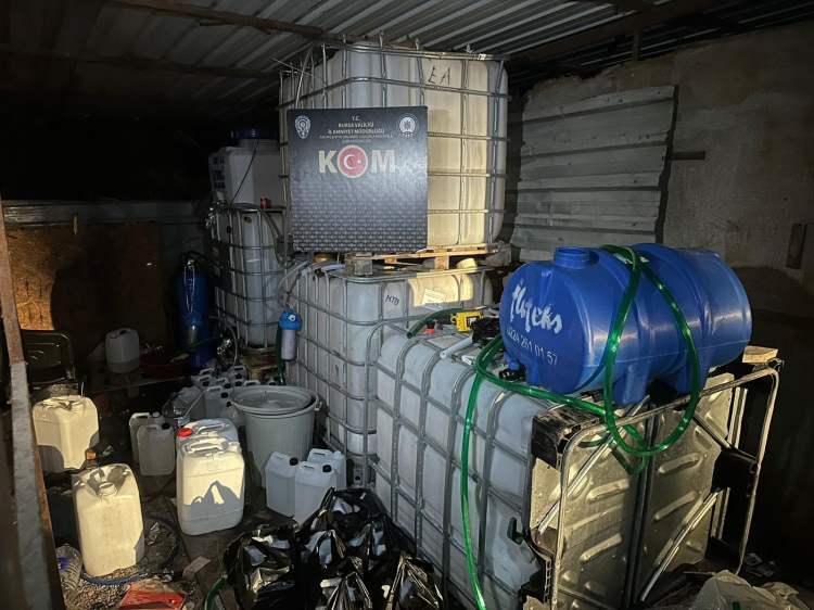 Bursa Emniyet Müdürlüğü tarafından yapılan açıklamada, “Alkollü içki imal ederek piyasa sürmek suretiyle insan sağlığına zararlı etkileri olan ve hatta ölümlere yol açabilen sahte alkollü içkiler üzerinden haksız kazanç elde edilmesinin engellenmesi için mücadelemiz kararlılıkla sürecektir” ifadelerine yer verildi.
