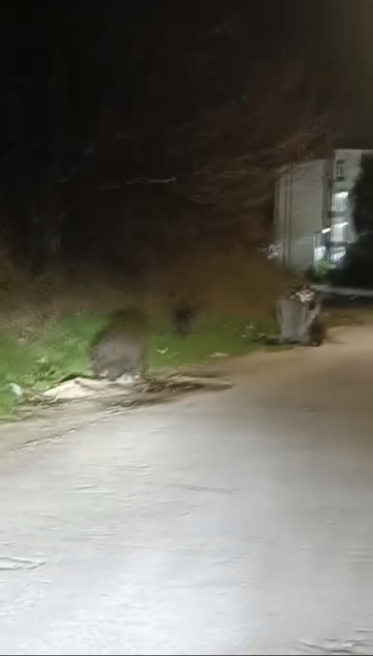 Bursa'da gece saatlerinde mahalleye inen domuz sürüsü yiyecek aradı. O anlar cep telefonu kamerasına yansıdı.