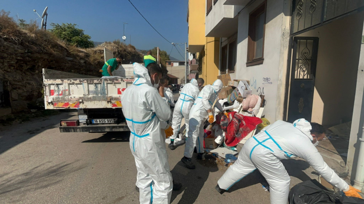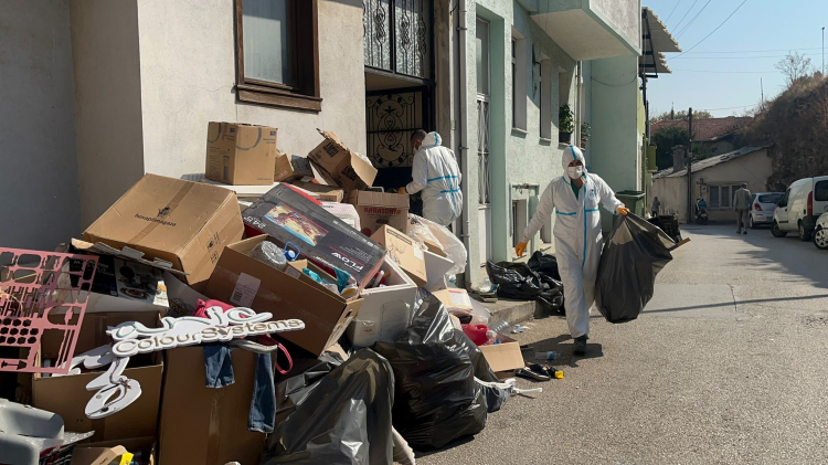 3 katlı binanın koridor kısmına bile çöp gören ekipler, kolları sıvayarak evi temizlemek için işe başladı. İ.U.'a ait olan ev için polis ekipleri güvenlik önlemi alırken, belediye ekipleri ise evden 5 kamyon çöp çıkardı. Belediyeye bağlı ekiplerin temizlediği ev, ilaçlanarak ev sahibine teslim edildi.