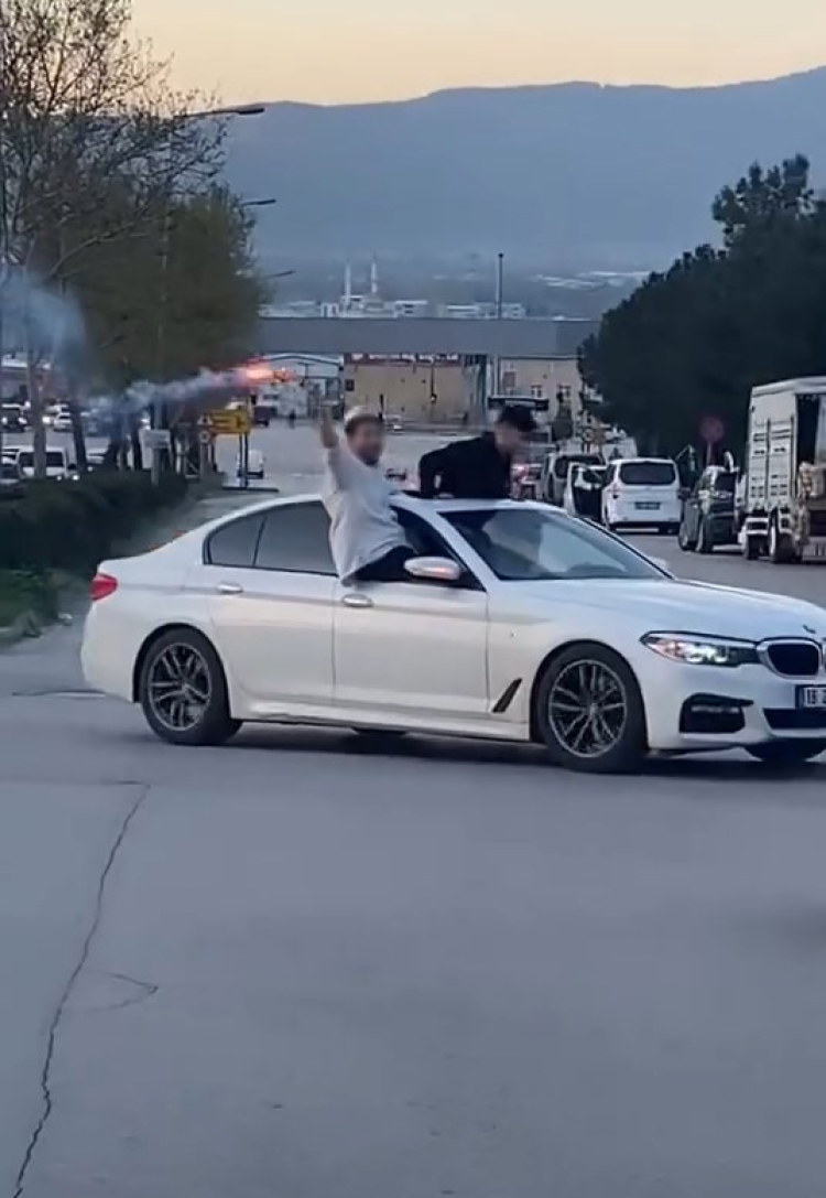 Bursa'da düğünde konvoy yapan sürücüler hem kendi canlarını hem de trafikteki diğer vatandaşları tehlikeye attı.