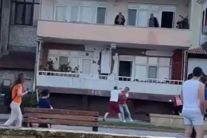 Bursa'da evlerin önüne motosiklet çeken motokurye ile ev sahipleri arasında çıkan tartışma kavgaya dönüştü. Ev sahiplerinden biri ise eline ne geçirdiyse balkondan aşağıya attı.