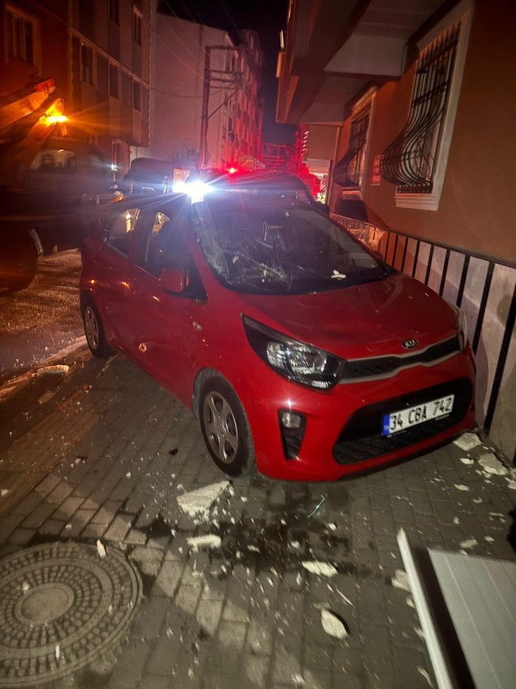 Büyük bir gürültüyle bir apartmanın çatısında bulunan paneller araçların üzerine düştü. 3 aracın zarar gördüğü olayda tellere takılan diğer paneller itfaiye ekipleri tarafından kurtarıldı.