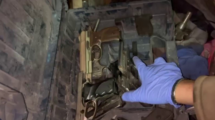 Yıldırım SÖS ekiplerinin titiz takibi sonucunda yapılan baskında 5 adet ruhsatsız tabanca, 14 adet kurusıkı tabanca, 27 adet şarjör, 63 adet çeşitli çaplarda fişek, silah yapımında kullanılan 14 parça araç-gereç ve 19 adet farklı türde silah parçası ele geçirildi.