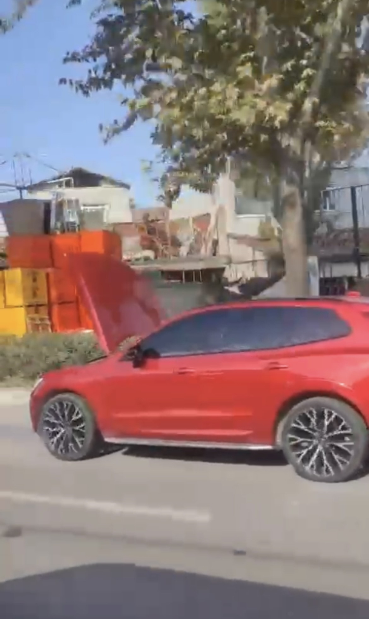 Olay, merkez Osmangazi ilçesi Mudanya Yolu Sanayi Caddesi üzerinde meydana geldi. Henüz sürücüsü öğrenilemeyen bir otomobil, ön kaputu açık bir şekilde seyretmeye başladı. Diğer sürücülerin kornalı ikazına aldırış etmeyen sürücü saniye saniye kameraya yansırken, yaşanan olayda korkulan olmadı.