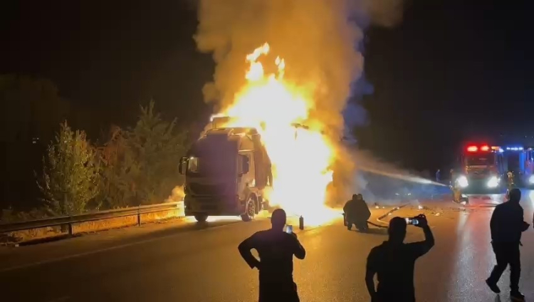 Bursa'da kargo yüklü tır, alev alev yanarak kül oldu.