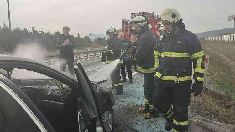 Yalova-Bursa karayolu Orhangazi Süpürgelik Mevkiinde seyir halindeki bir otomobilin motor bölümünden dumanlar çıkmaya başlayınca sürücü aracını emniyet şeridine çekip eşi ile birlikte araçtan indi. Bir anda alev alan otomobildeki araç yangınına çevreden yetişen diğer sürücüsüler yangın tüpleri ile ve itfaiye ekipleri tarafından müdahale edildi.