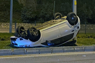 Bursa'nın Mudanya ilçesinde orta refüje çarpıp takla atan otomobildeki 2 kişi yaralandı.