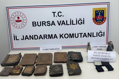 Bursa'nın İnegöl ilçesinde jandarma tarafından bir köy evine yapılan operasyonda çok sayıda altın yazmalı kitap ile siyah dolar banknotlar ele geçirildi. Bir kişi gözaltına alındı.