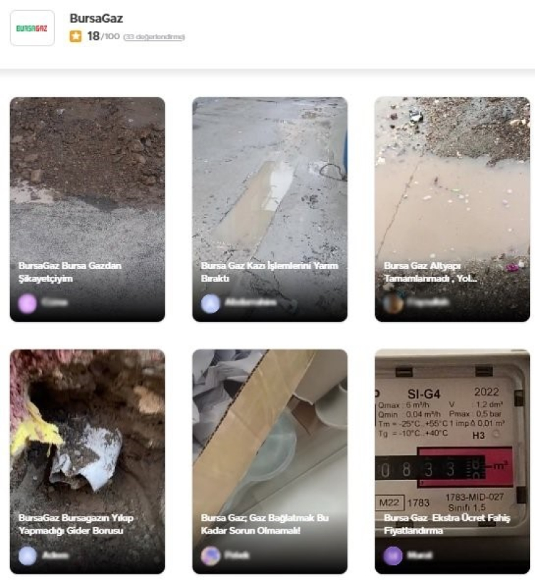 Türkiye'de örnek uygulamaları hayata geçirmeyi hedefleyen Bursagaz, 1,2 milyonun üzerinde abonesine yaptığı hizmetler ise vatandaşı canından bezdirdi. Temiz bir gelecek için karbon emisyonlarının azaltılması, atık yönetimi, geri dönüşüm, iş sağlığı ve güvenliği, proses güvenliği, enerji ve kaynak verimliliği konularında yaptıkları yenilikçi yatırımlara rağmen, vatandaşı memnun edemedi. Sosyal medya ve internet ortamında yapılan yüzlerce şikayet, insanların neler yaşadığını gözler önüne serdi. Kimi sokağının köstebek yuvasına çevrilmesinden, kimi fazla yansıtılan faturadan, kimi kaçak kullanmadığı halde kaçak tüketimden yaka silkti. Kaçak kullanım bedeli yansıtılan vatandaş, şikayetini şu şekilde dile getirdi;