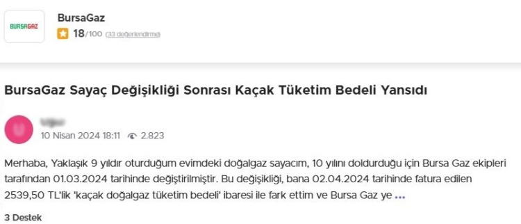 Buna benzer bir çok sorun vatandaşlar tarafından sosyal medya ve internet üzerinde dile getirildiği görülürken, Bursagaz'ın kendi sosyal medya hesaplarının ise yoruma kapalı olması dikkat çekti.