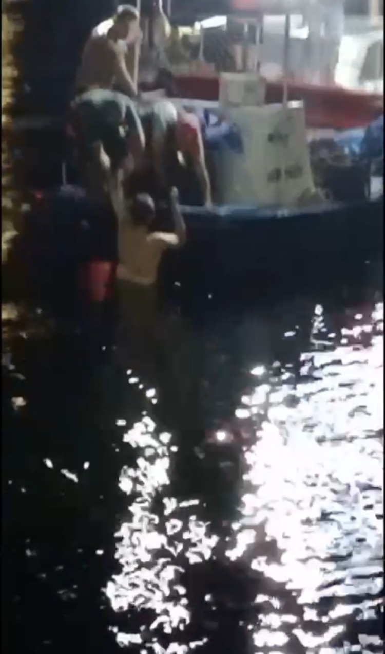 Bursa'nın Gemlik ilçesinde alkollü bir şahıs denize girdi. Denizde boğulma tehlikesi yaşayan şahsı balıkçılar kurtardı. O anlar amatör kamera ile kaydedildi.
