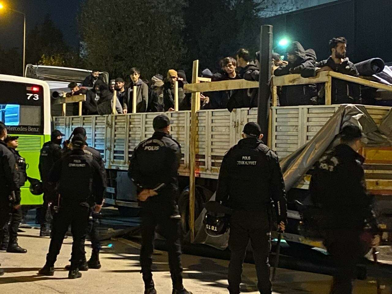 Olay, Kartepe ilçesi Arslanbey Organize Sanayi Bölgesi Ülker Sokak'ta meydana geldi. Edinilen bilgiye göre, Kocaeli İl Emniyet Müdürlüğü ekipleri 06 DK 4226 plakalı Mercedes marka tırı durdurdu. Polis ekiplerince tırın dorse kısımda yapılan incelemelerde branda ve boruların arasına saklanmış halde 150'ye yakın yabancı uyruklu düzensiz göçmen olduğu tespit edildi. Olay yerine hemen çevik kuvvet ekipleri sevk edildi. Ardından göçmenler dorseden indirilip bölgeye gelen Kocaeli Büyükşehir Belediyesine ait 2 otobüs ile Yarımca Polis Merkezi'ne götürüldü.