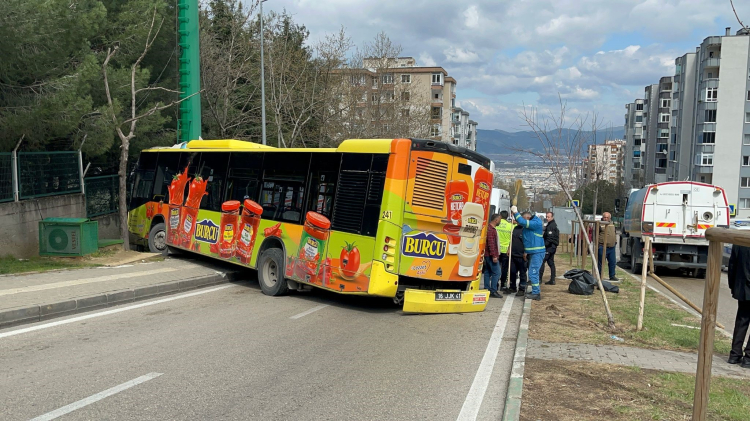 Alınan bilgiye göre, Heykel Siteler hattında çalışan S2 numaralı belediye otobüsü Kaplıkaya Siteler Mahallesi Kanuni Cadde üzerinde frenlerinin boşalması sonucu önce önündeki bir otomobile ardından da karşı yöne geçip bir direğe çarparak durabildi.