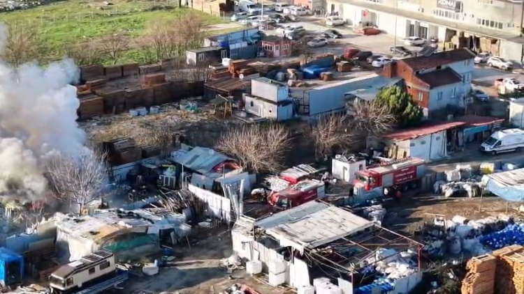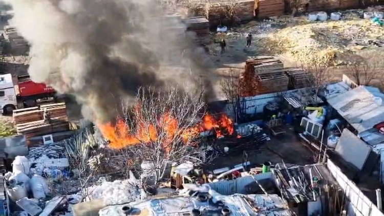 Bursa'nın İnegöl ilçesinde faaliyet gösteren bir geri dönüşüm (hurdacı) tesisinde yangın çıktı. Yangın havadan görüntülendi.