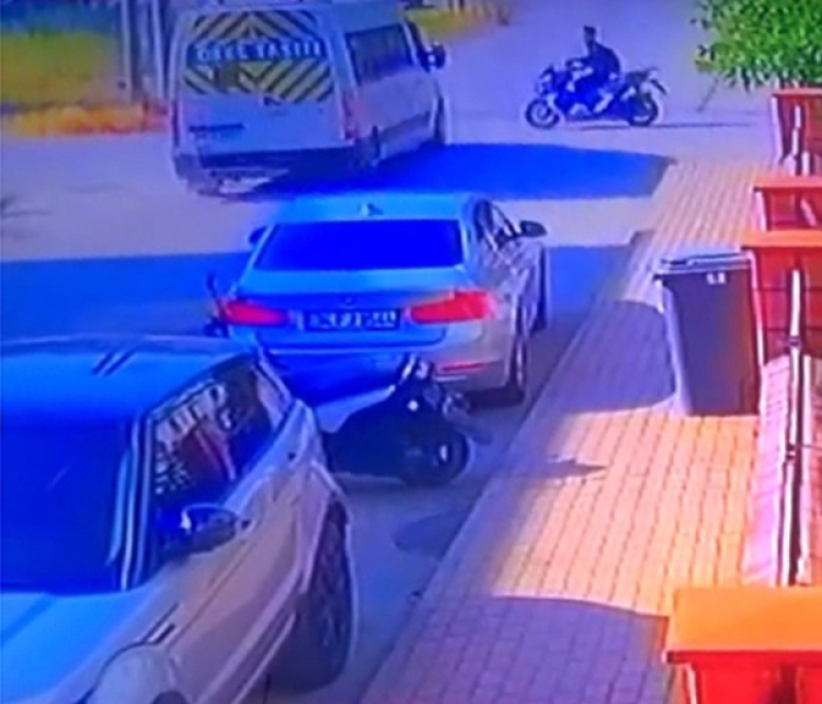 Bursa'nın İnegöl ilçesinde servis minibüsüyle çarpışan motosikletli yaralandı. Kaza anı bir iş yerinin güvenlik kamerasına anbean yansıdı.