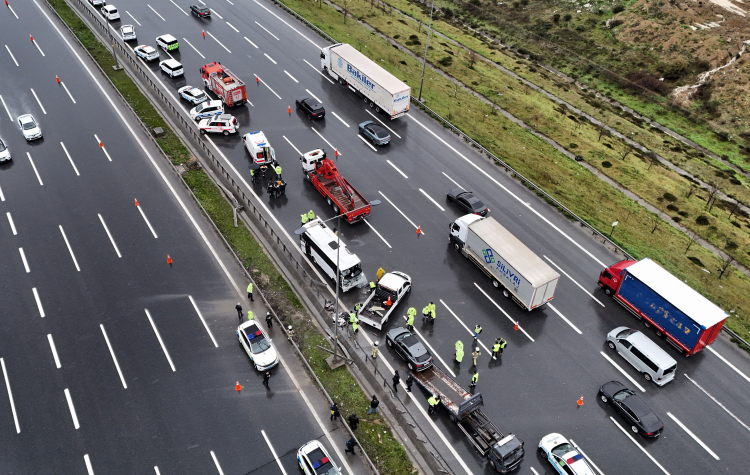 İstanbul Valiliği, Kuzey Marmara Otoyolu Başakşehir-Habipler bağlantı yolunda yaşanan kazada şehit olduğu belirtilen polis memurunun hastanede kalp masajıyla hayata döndüğünü açıkladı. Kazada 4'ü ağı toplam 30 kişinin yaralandığı ifade edildi.