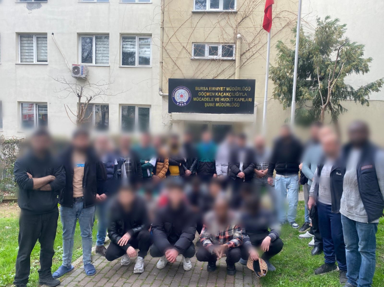 Bursa Emniyet Müdürlüğü Göçmen Kaçakçılığıyla Mücadele ve Hudut Kapıları Şube Müdürlüğü tarafından, Göçmen Kaçakçılığı suçunun deşifre edilmesi, suç failleri ve organizatörlerinin yakalanmasına yönelik yapılan çalışmalar kapsamında, Yıldırım İlçesi Yunus Emre Mahallesi'nde faaliyet gösteren bir işyerinde yabancı uyruklu şahıslara kalacak yer temin edilerek, çalıştırıldıklarının tespit edilmesi üzerine; 30 Ocak 2025 tarihinde iş yerine yapılan operasyonda iş yerinde çalışan 29 yabancı uyruklu şahsın bulunduğu belirlendi. Şahısların İl Göç İdaresi Müdürlüğünce yapılan kimlik kontrollerinde 2 si çocuk olmak üzere toplam 10 yabancı uyruklu şahsın yasal kalış haklarının bulunmadığı belirlendi. İkamet izni olmadan yasa dışı şekilde yabancı uyruklu şahıslara kalacak yer temin ederek, çalıştırdığı tespit edilen İ.M.D. isimli şahıs yakalanarak adliyeye sevk edildi.
