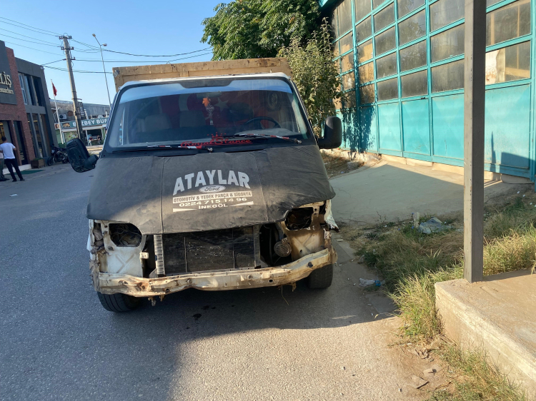 Bursa'nın İnegöl ilçesinde meydana gelen kazada kamyonet ile çarpışan motosikletin sürücüsü yaralandı. Kaza anı bir iş yerinin güvenlik kamerasına saniye saniye yansıdı.