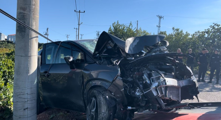 Kontrolden çıkan otomobil direğe çarptı: 4 yaralı