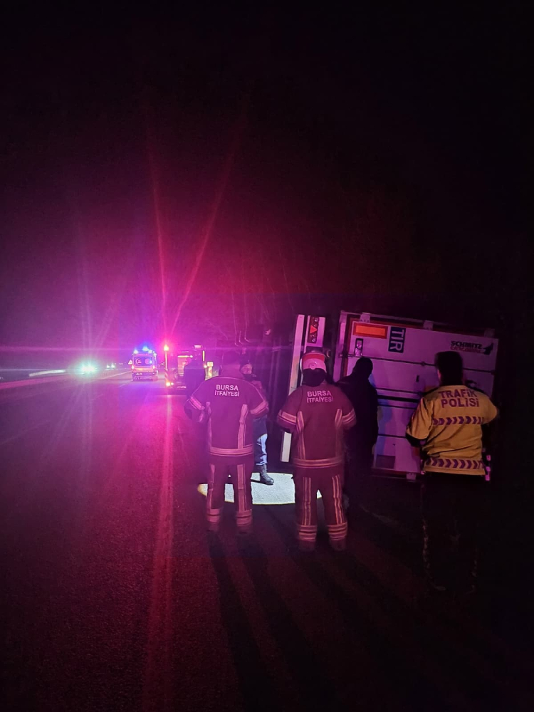 Kaza saat 05.30 sıralarında Bursa-Ankara karayolu üzeri İnegöl'ün Mezit-5 mevkiinde meydana geldi. Bozüyük istikametinden İnegöl'e seyir halinde olan Sürücü Saffet S.(33) yönetimindeki 35 CYB 918 plakalı patates yüklü TIR, sürücüsünün kontrolünden çıkarak yolun kenarına devrildi. Kaza yerine 112 jandarma ve itfaiye arama kurtarma ekipleri sevk edildi.