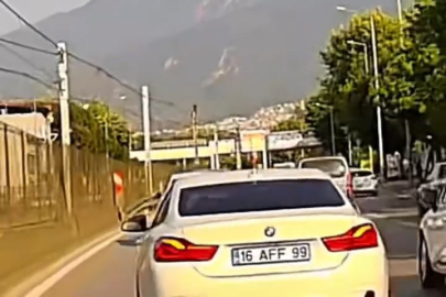 Bursa'da makas atarak trafiği tehlikeye atan sürücü kameraya yansıdı.