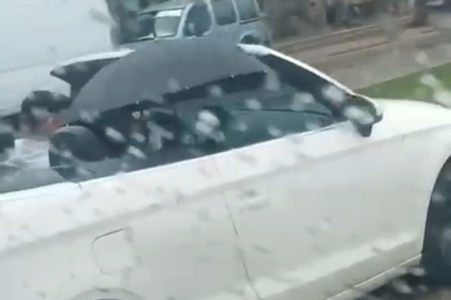 Bursa'nın merkez Nilüfer ilçesinde seyir halinde olan sürücü aracının açılır tavanını kapatamayınca yan koltukta oturan arkadaşı yağmurdan korunmak için farklı bir yönteme başvurdu. Şemsiye açarak seyahat eden sürücü ve arkadaşı, yoldan geçen diğer sürücüler ve yayalar tarafından şaşkınlıkla izlendi. Bazı vatandaşlar, sürücünün bu cesur ve eğlenceli hareketine gülerek tepki verirken, kimisi de o anları cep telefonu kamerasıyla kayda aldı.