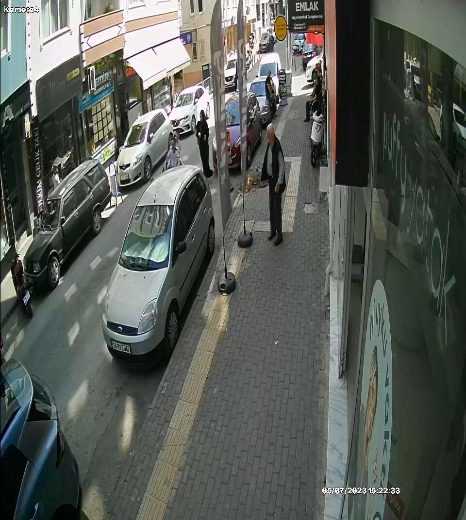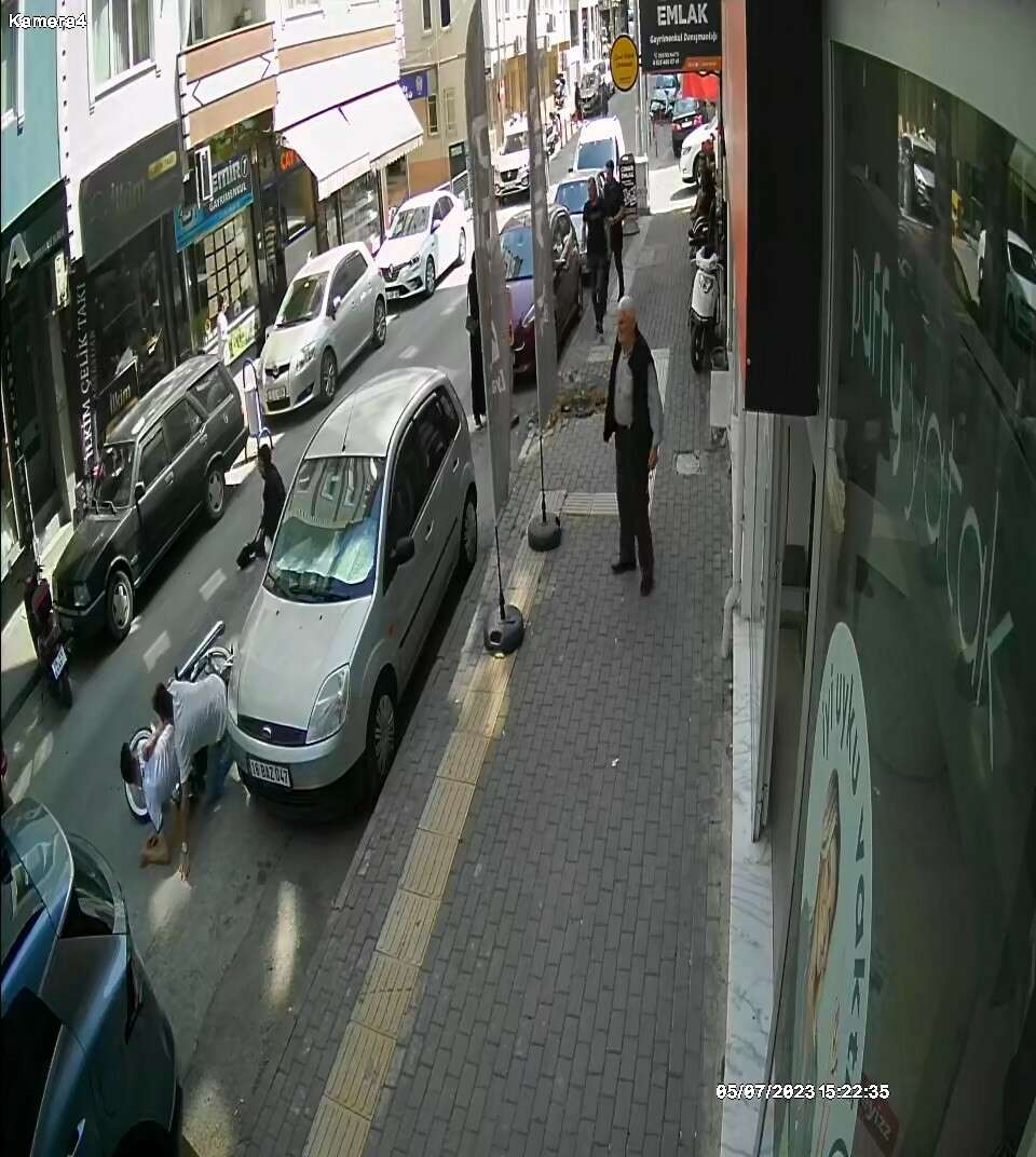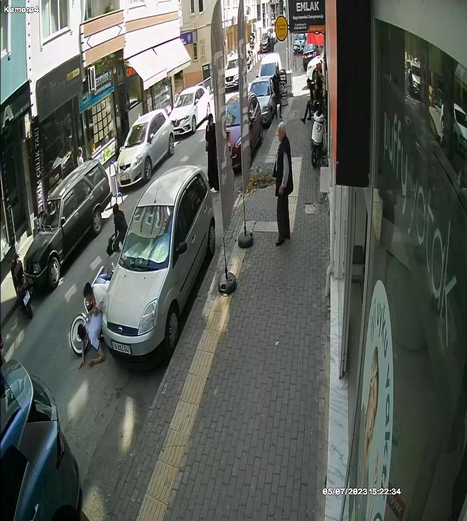 Cadde üzerinde bulunan bir iş yerine ait güvenlik kameraları ise, 2 kişinin yaralandığı kazayı saniye saniye kaydetti.